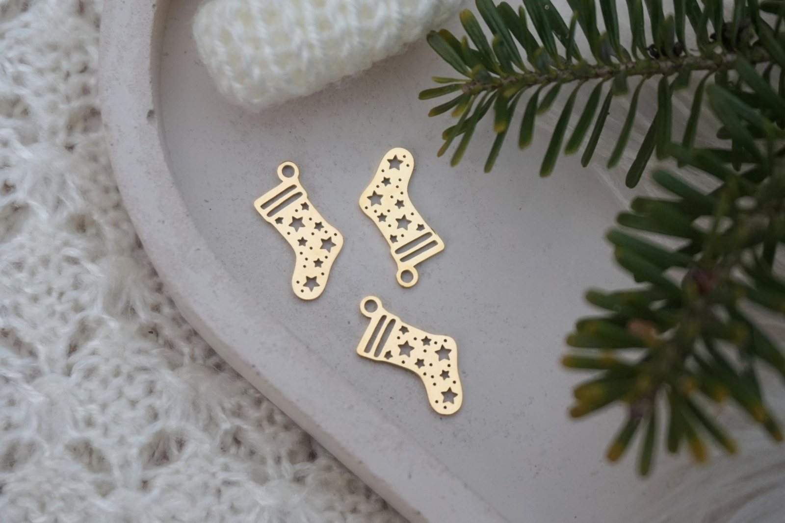 Skarpetka w gwiazdki / zawieszka / stal chirurgiczna / 9x16mm / złoty / 1szt