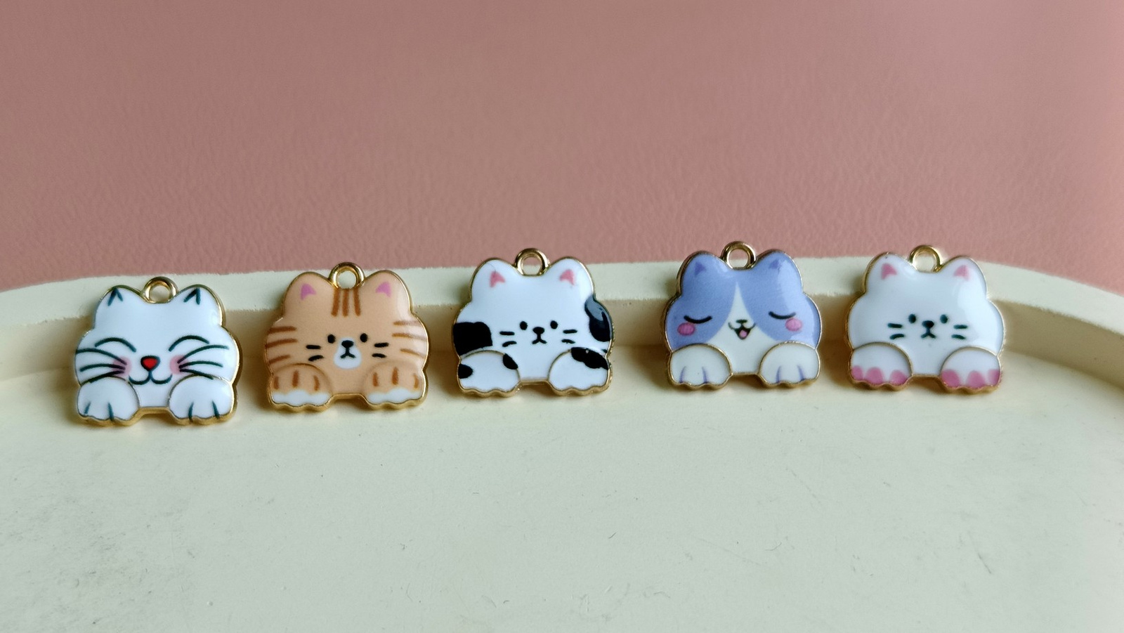 Opinie o Słodki kot/ zawieszka / 16x14mm / metal / złoty, granatowy / 1szt