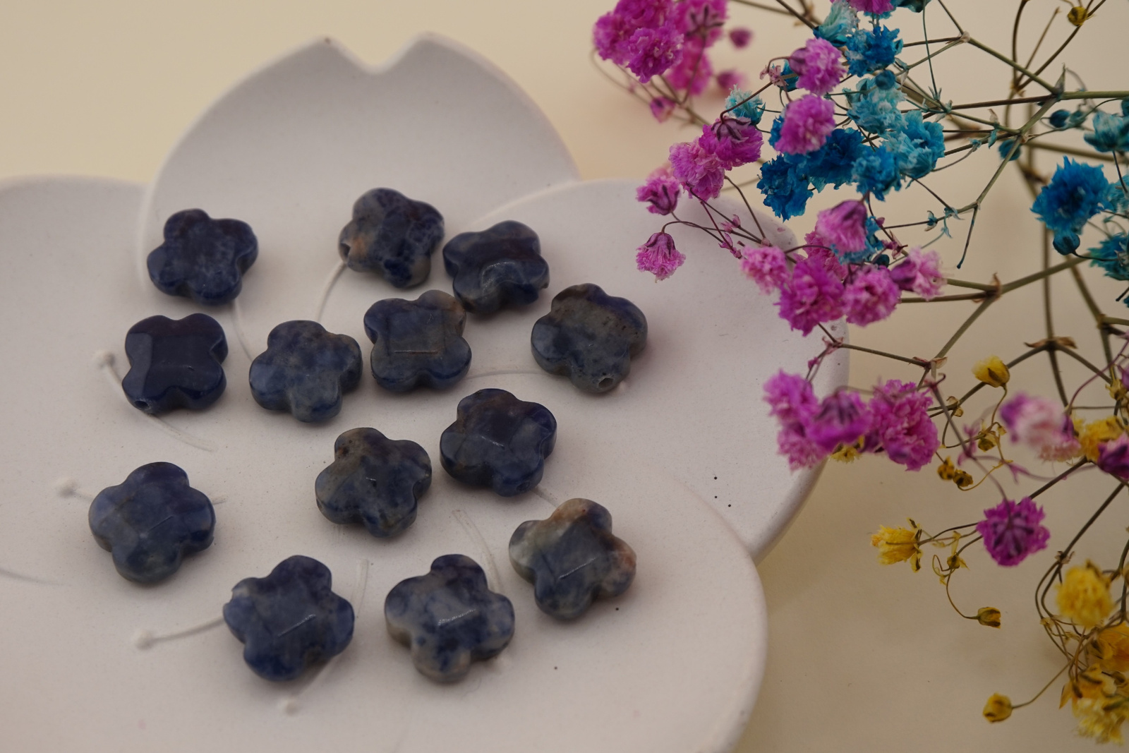 Sodalit / koniczynka fasetowana / 12x12mm / otwór 1mm / grubość 5mm / 1szt