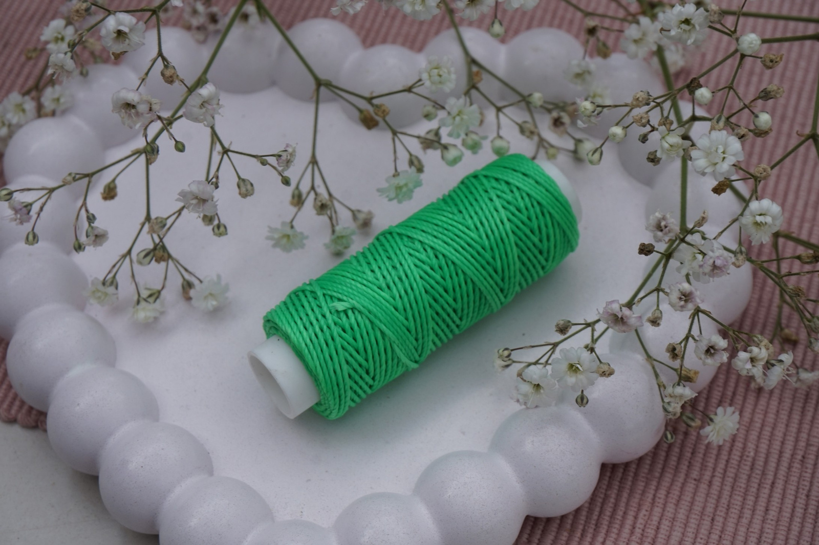 Sznurek do makramy woskowany / poliester / 0.45mm / zielony żywy 827 / szpulka 40m