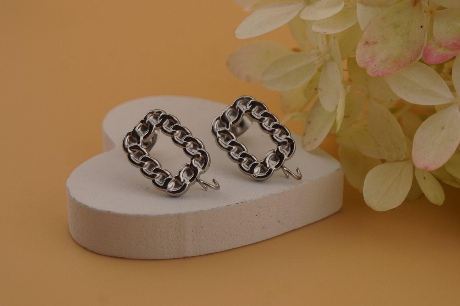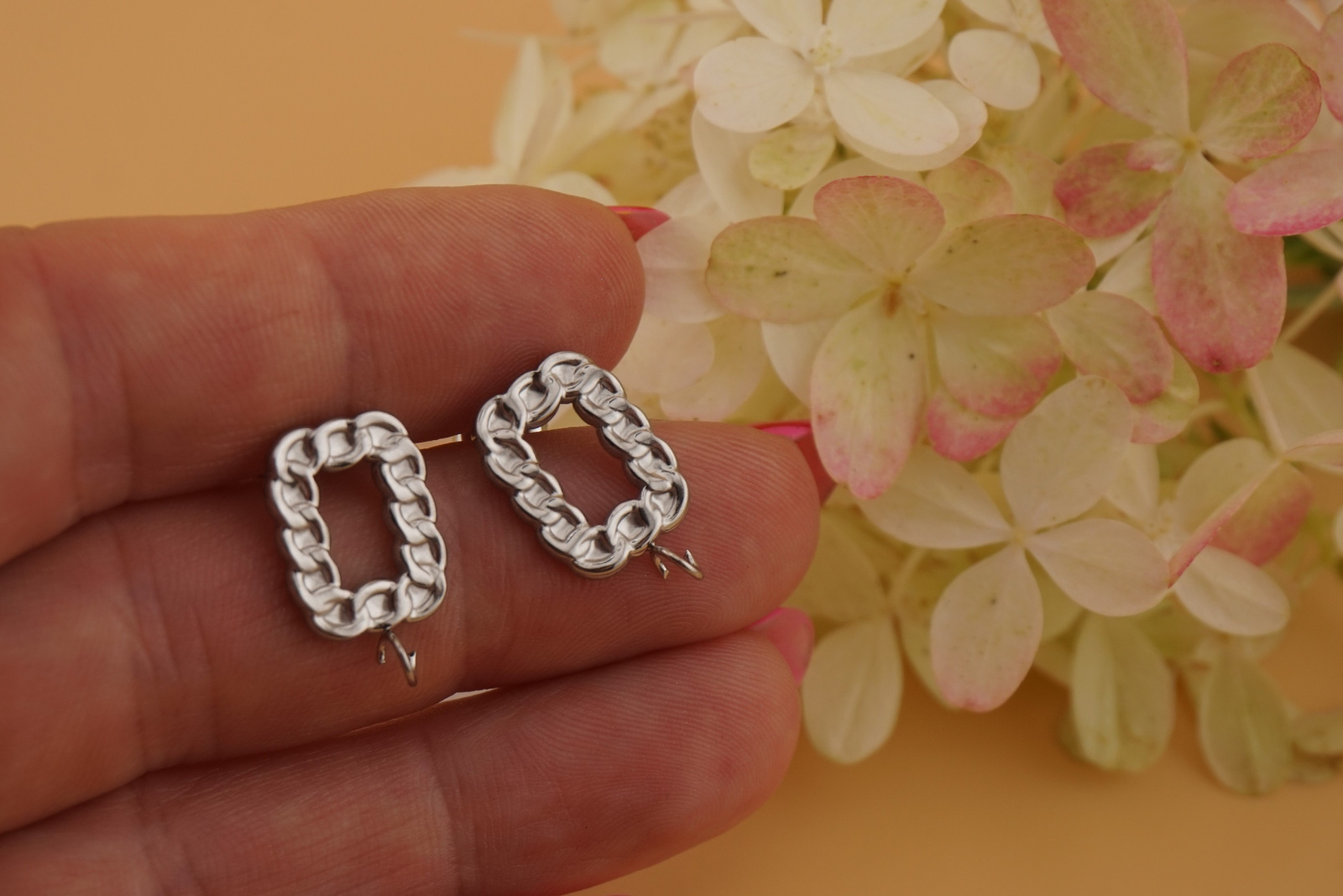 Sztyfty imitacja łańcuszka / stal chirurgiczna / 11x14mm / srebrny / 2szt