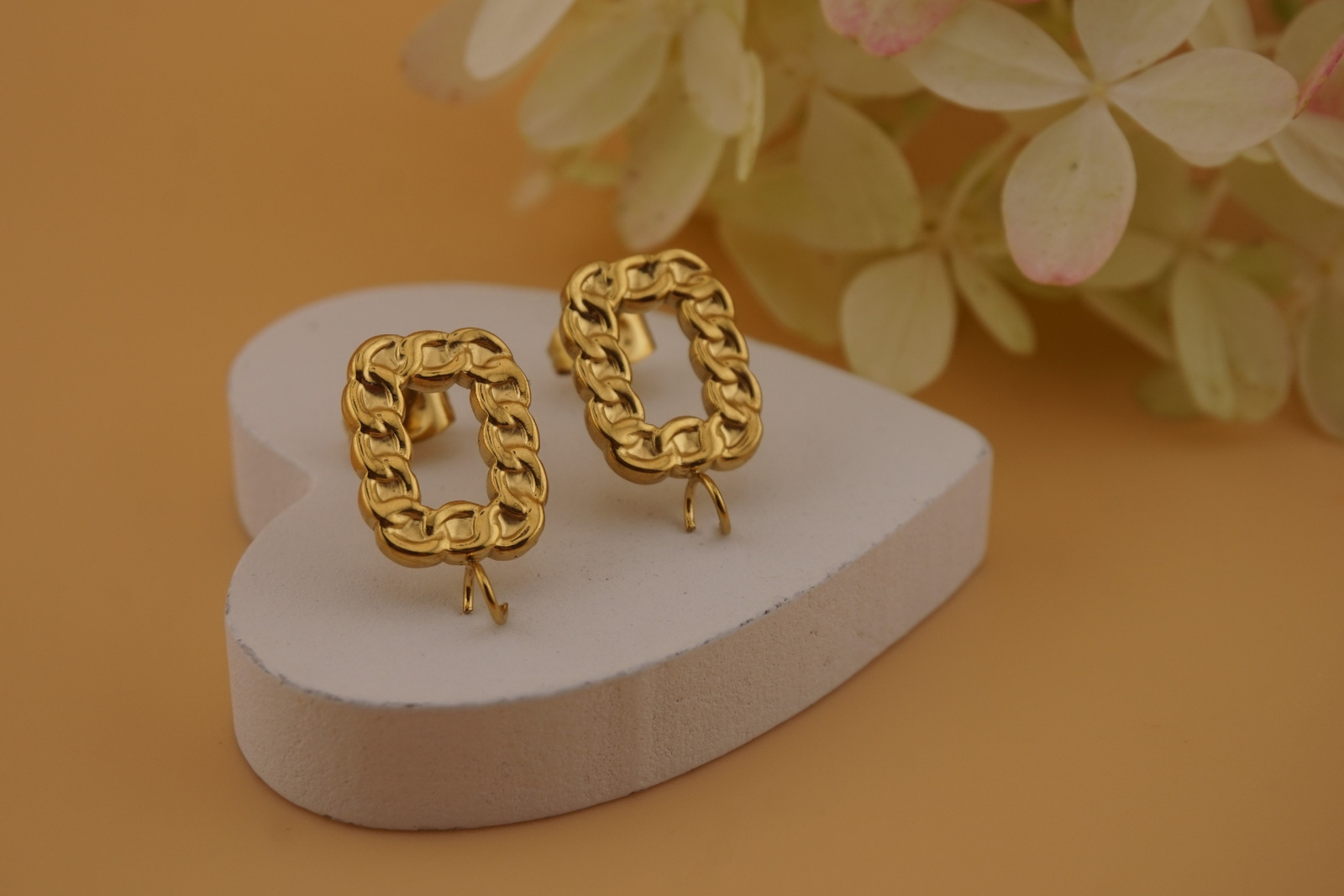 Sztyfty imitacja łańcuszka / stal chirurgiczna / 11x14mm / złoty / 2szt