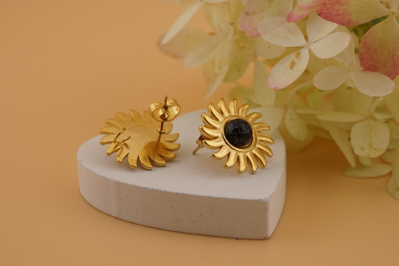 Sztyfty z czarnym oczkiem / stal chirurgiczna / 17mm / złoty / 2szt