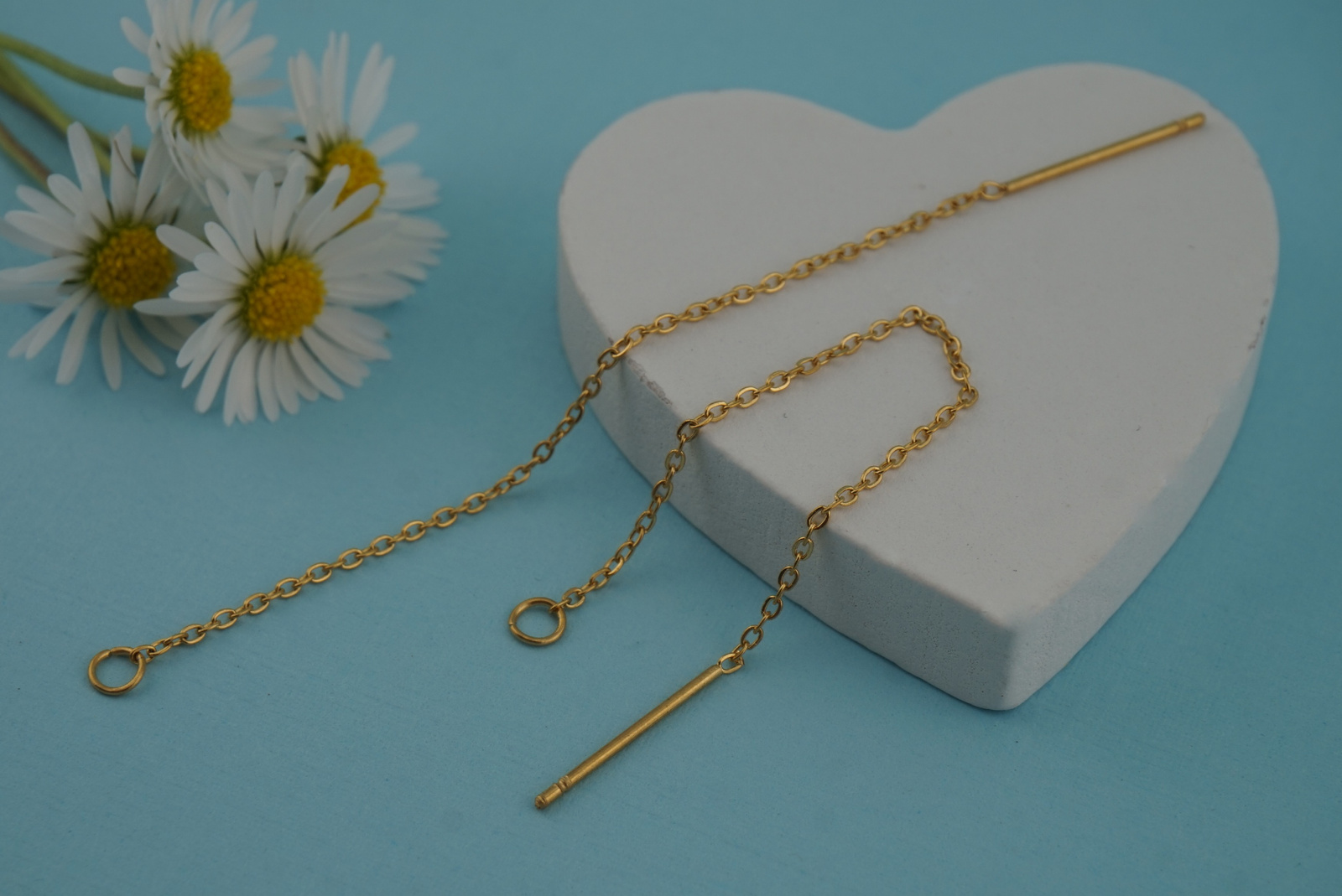 Sztyfty z łańcuszkiem / stal chirurgiczna / 80mm / złoty / 2szt