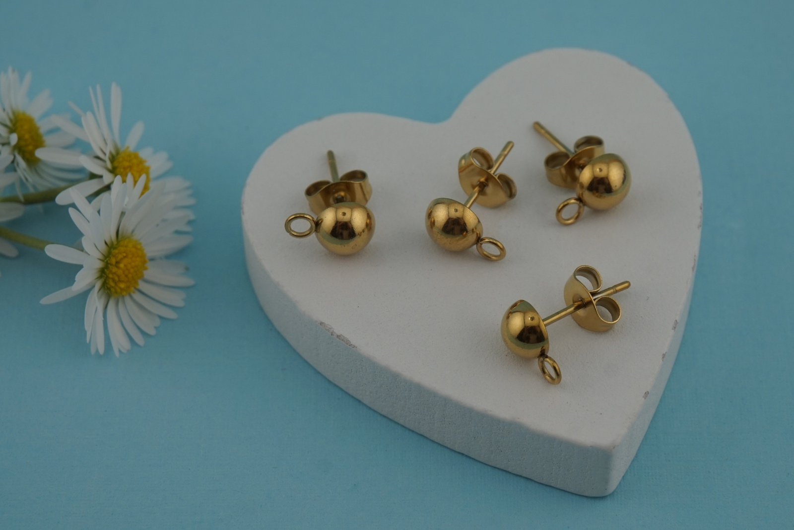 Opinie o Sztyfty z zatyczkami / połowa kulki / stal chirurgiczna / 8mm / złoty / 2szt