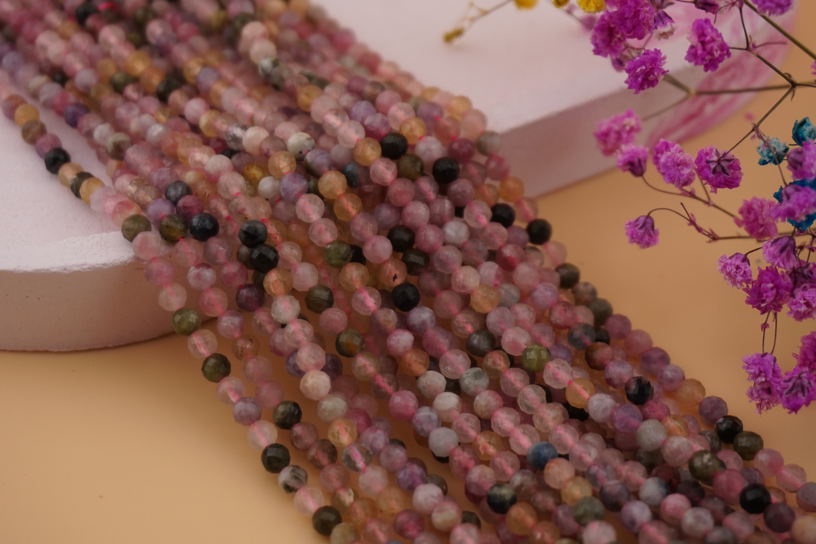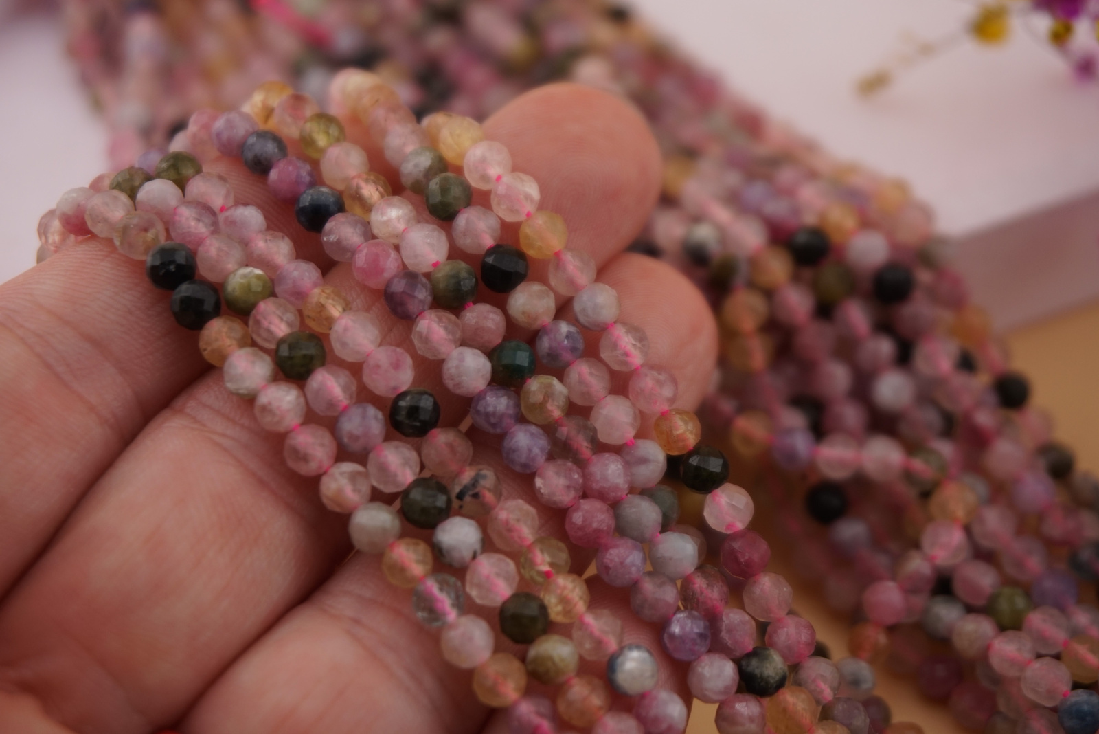 Turmalin kula fasetowana to doskonały wybór dla twórców biżuterii, którzy cenią naturalne, kolorowe minerały. Każdy sznur to małe dzieło natury – pełne światła, barw i subtelnego blasku.