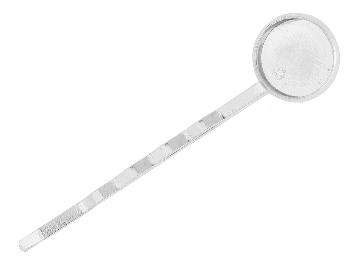 Wsuwka do włosów / z mosiądzu / kaboszon 14mm / 60x16x5mm / srebrny / 2szt