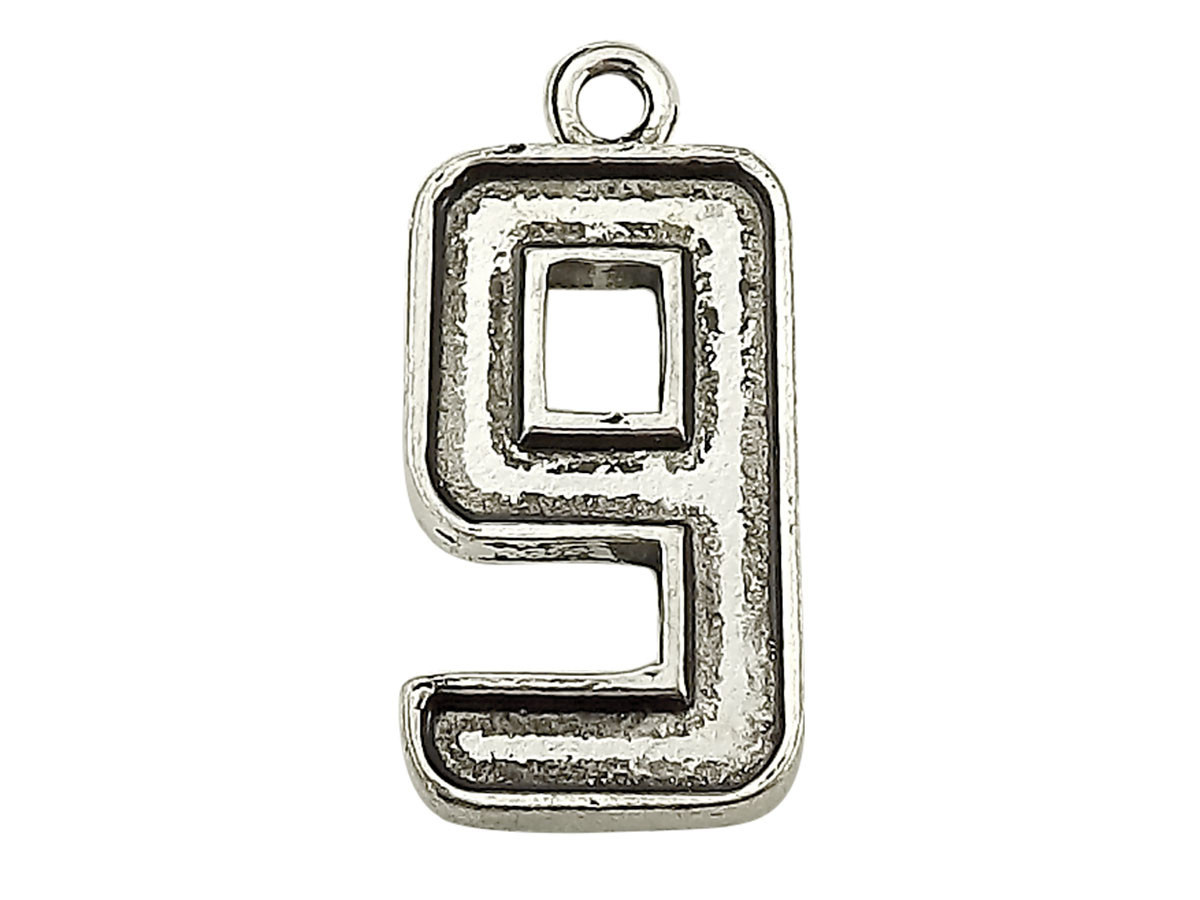 Zawieszka ozdobna, cyfra 9 / kolor srebrny / 29x14x3mm / wielkość otworu 2mm / 2szt