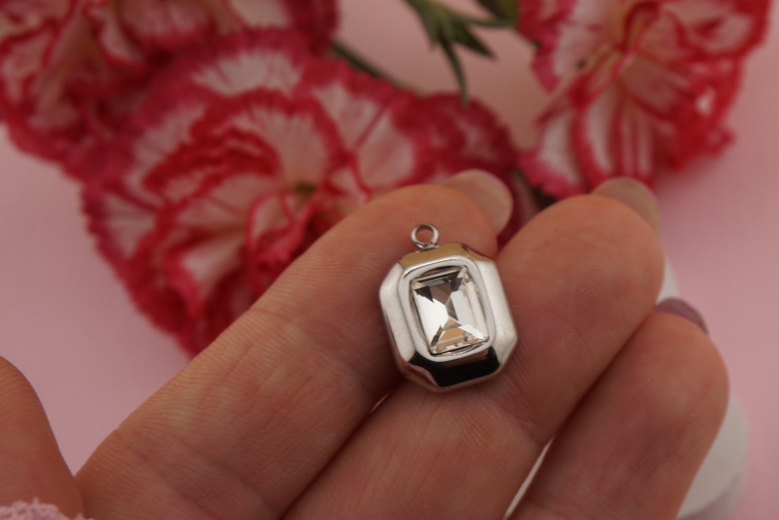 Zawieszka prostokąt z cyrkonią / 13x15mm / srebrny / 1szt