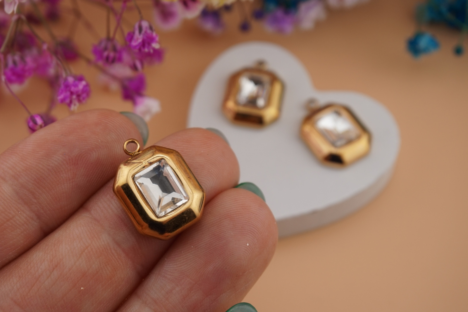 Zawieszka prostokąt z cyrkonią / 13x15mm / złoty / 1szt